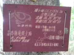 | 鳩ケ峰(点名:川上) | 山歩仲間 の鳩の絵表示板 | 笹藪の府県境稜線 | 白い府県境界杭 |