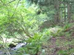 | 資料「北山の峠−京都から若狭・丹後へ−(下) 金久昌業著」尼来峠、尼公坂によると、古和木の山口神社から川上へ通じる峠は、菅の坂(萓待坂)といい、古和木・川上間を結ぶ峠道が、尼公峠と2本もあるのは珍しいと書かれています。 尼公峠近くにある奥尼公の「隠し田?」ル−トだったのでしょうか。地図で田圃記号が付いているので、相当広い面積だと思います。 またこの資料には、奥尼公の水が川上に流れているという村人の話も、伏流水があるのだろうかと推測されています。 稜線の分水嶺からいってまずあり得ないと思われ、稜線一帯が奥尼公なのか、あるいはこの水田は、川上村の隠田、水=水田だったのかなど想像をたくましくされます。 奥尼公などの植林地の管理は、福井県側でされているようにも書かれています。稜線に迫る妻谷尾林道を通じて行うなら簡単と思われます。 |