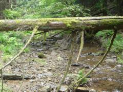 | 古和木林道の尼公谷にかかる | 峠口に駐車 | 木橋をわたる GPSロスト | 堰堤があった |