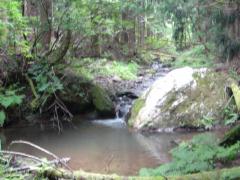 | 深い淀みを迂回して | 谷沿いの道を登る | 広すぎる水田跡は植林地 | 作業小屋にはセンバコギ |