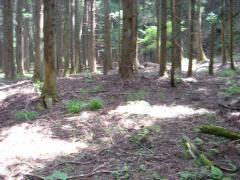 ![]() 「環綾部市境アルプス」は、奥上林では福井県境であり、「山歩仲間」の皆様から「若丹国境尾根」とも名付けられている。先に尼来峠−△横谷を縦走したが、続きの尼公峠と△小脇谷へ登った。 昨日の梅雨明け宣言を待って、尼公橋に駐車、GPSの準備をすませ、尼公谷に沿って峠に向かう。林間に入るとすぐに衛星受信をロス。川に出ると木橋が架かっている。念のため谷の直進ル−トを調べる。道はあるようだが、洞峠で谷を直進して引き返したことを思い出し、対岸の木橋の道をとる。 しっかりした山道があり、これこれと思い進むと堰堤があった。更に進み若干空の開けたところに出たので、GPSを頭の上に差し上げていると、やっと衛星受信回復。動かないと位置が判らないので少し移動。ゲッ、西に向かっている!また失敗!。 木橋まで引き返し沢登りを開始。かなりの水量の沢を右に左に・・何度も々長靴で渡り歩く。藪をくぐり、倒木をくぐり乗り越え、苔むした岩そばの細道を横渡りに越し、横から谷の流れ込む段差を両手を使って吊り上がり、まるで障害物競走だ。沢渡り、障害物の好きな方には、お勧めコ−スである。いつ沢から抜けられるのか、沢渡りの辺土に落ち込んだ気持ちになる。結局、峠までの全ル−トが谷沿い道であった。 小学校の時、体育劣等生で、体育授業の「棒のぼり」「平行ハシゴ段」「鉄棒」「跳び箱」すべて、一段もできず泣いていた自分が、なんで今こんな事やってるのか自分ながら不思議に思う。 谷は右からも左からも流れてくるが、ただ本流を探して、沢を渡りに渡り登り詰めていく。植林した平地に出た。広い!広すぎる!谷が右から入り込み、進むとまた右前方からの谷が見える。左手も植林地が広がり、奥は谷に見える。これぞ地形図に田圃の記号の付けられた場所。昔の隠し田と推定されるところ奥尼公(おくにこ)だ。随分の広さがある。作業小屋が高台に残っていた。中にセンバコギが見えた。 広い林間で進む方向が判らずうろうろする。中央を流れる沢を何度も渡ってみるがGPSでは判らない、立木にトラテ−プがあった。赤いリボンもあった。林間なので道らしいものはない。ともかく地図で調べて北に向かう。正解だった。広い隠し田跡から抜け出せた。さらに谷に沿い登り詰めていく。かなりよい山道になる。真っ直ぐの谷を見送り、右の谷に進む。行く手に稜線が見えてきた。登り切ると「尼公峠」峠地蔵が待っていた。 日向に2m出るとそこはもう、車が走れる「妻谷尾林道」が走っていた。 △小脇谷標石は、尾根伝いに少し登った藪山の頂上にあった。若丹国境尾根を示すトラテ−プが付近の立木に巻かれていた。 この稜線に続く、菅の坂峠−鳩ケ峰(△川上)登山は、ここからの縦走で可能だが、先に下見をした古和木谷の芦谷−鳩ケ峰−菅の坂の周回コ−スで登頂することにして、引き返した。下りは谷川の流れている方向にただ一路下るだけで(沢渡りと障害物競走で)あった。 |