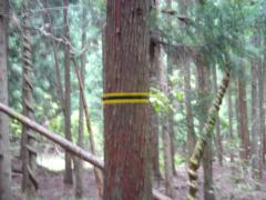 | 迷う内にトラテ−プ発見 | 尼公峠の地蔵さん | すぐ側に妻谷尾林道 | 三角点:小脇谷 |