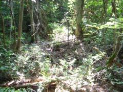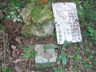 舞鶴在住のふじもと様から、小立目−△久田美−支尾根−府道で登ってこられた報告と、左の三角点標石の写真をメ−ルでいただきました。前回、時間の余裕がなく登頂に失敗しましたがその原因は、市境尾根のp378ピ−クに乗るため、藪こぎで上がり、なお藪道が続くので予定時間の大幅な超過を予想したためです。 ところが、南に90度曲がる、関電標識の立つ地点のそばに、p378ピ−クの巻き道があるとの、ご連絡を頂きました。この進入路を見落としていました。あると分かれば直ぐ見つかるル−トでした。 下から登ってくる道の可能性もありますが、この地点で北に向かう道は、小立目の上の鉄塔の北にある谷を渡った鉄塔に通じる巡視路なので別であり、ふじもと様達の地図を読まれる確かな2人の目と経験の豊かさ故と思います。 この道は、それ程の藪もなく通っており、もう1ヶ所今度は南に巻き道があるのを、ピ−クに直進し、立木にピンクテ−プが巻かれ、行き止まっていましたが、これは先に見た道の方向が分かっていましたので、僅かの藪こぎでこなせました。 頂上からは支尾根には下りずに引き返しました。往復の所要時間約90分。 久田美峠へは、金河内に鳥居印があるので調べがてらに別途で行きたいと思います。 |