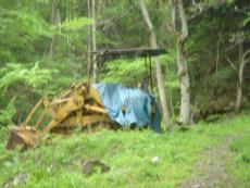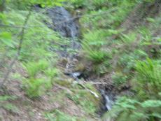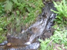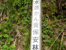 | 水源かんよう林の標柱 | 小枝に赤布・峠への林道 | 黄色のブル | 滝 |