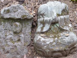 ふじもと様のご投稿今日は、おとなしく自宅で・・・のつもりが・・相棒が、結構見通しもあると云うので、10時をすっかり回ってから出発しました。行き先は気になる胡麻峠。 大唐内の奥、左に君王山林道を分け直進、少し入ると小沢が左からあり、左岸と林道の接する部分に三角の草の平地とその奥に昔の棚田の石垣があります。 この先左に林道が分岐、角に白い府の「水源かんよう林」の標柱が寝てます。小枝に赤布もあります。これが胡麻峠への入口です。 林道に入るとすぐに黄色いブルがあり、その前で林道はなくなります。あとは以前からの峠道が地蔵さんのある峠までついています。 道が地蔵さんの前に出るところには以前からの松の大木が今も横たわって行く手を阻んでいます。 地蔵さんの背後のえびねは、1・2日で咲きそうです。養老方面には2コブほど行って見ましたが、林道は近くには来ていませんでした。 つづく |