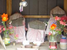 | 府道487 胡麻峠へ | 入り口付近の桜 | 大唐内の地蔵堂 | 村から見る峠付近の山 |