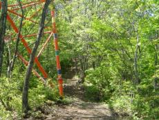 先週、胡麻峠から三国岳に登山したが、時間がなく行きそびれた養老ケ岳。大唐内の奥、君王山林道の出合いに駐車して、ふじもと様に教わった道から胡麻峠を目指した。昨日の降雨の影響か、谷を何度も渡るが前回よりも水量が多い。足を滑らさないように慎重に谷中の石に足を乗せる。胡麻峠につき、ふじもと様に教わりながら失念した峠地蔵の裏にあるエビネを、今回はしっかり写真にゲット。 稜線を南に向かう。しっかり開かれ、歩きやすいようにプラスティック製の段が作られている。何度も上り下りのある稜線歩きだ。行く手の山々に鉄塔が立ち並び、側や下を潜り抜けていく。美しい雑木林の林間あり、植林地帯あり、開けた草原ありの山道で、草花が咲き、展望は360度各所で開けている。舞鶴湾が見える。先日登った青葉山も良く見える。 どこから上がって来るのか林道がある。すぐ側に来たので林道に出てみた。少し草が生えかけているがまだ新しいようだ。 急な下りと登りのあと三叉路に出る。右に行くと下ってしまうようだ。あわてて引き返しほぼ直角に曲がる道を選ぶ。少し行くと林道の側に出た。ふじもと様が、ここからなら30分で頂上と云っておられた地点だ。(帰路はずるして、この直角の登り下り登り下りをパスし、先程見に出た林道から山に入った)日当たりの良い稜線を辿ると頂上に着いた。見晴らしも良く綺麗な林間で蝶が飛んでいた。 高尾と云うだけあって、長い尾根道歩きで、往復3.5時間であった。2時間以内の登山が常であったので、長場の登山はやはり疲れた(HP作成も2時間以内) 奥上林の山々は登山口に着くだけで往復1時間はかかり、さらに奥が深いので頂上まで長場の登山になるようだ。縦走できれば少しは楽なのだが、駐車場まで戻るとなると長時間覚悟で登るしかないようである。 |
