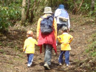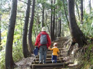 | 登山道を行く | 美しい ブナの原生林 | 段が設置 3才1ケ月の子連れで |