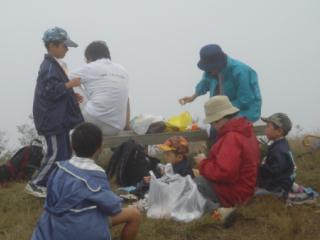 | 記念撮影 | おにぎりなど昼食 ガスが巻いてきて寒い | |