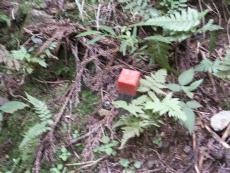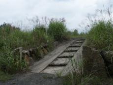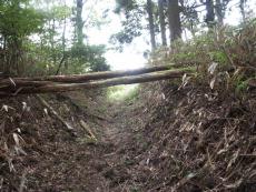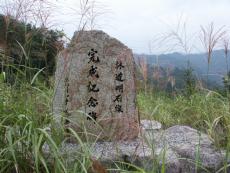 | いきなり広い林道に飛び出す | 目の前に石段が | 林道明石線完成記念碑荒巻知事 | 民有林道みちしるべ 和知町 | NTT専用管理道路看板 |