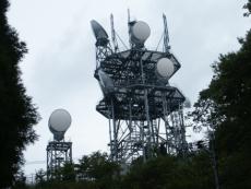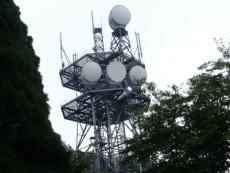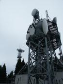 | 電波塔が見えてきた | NTT奥山無線中継所 | 6+1個のパラボラがみごと | すぐ横にもう一つの塔が立つ | パラボラ2個 |