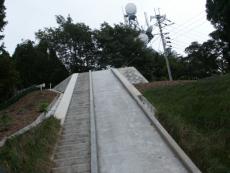 | 消防防災課 鉢伏山無線中継所 | すぐ下にパラボラ1個と管理棟 | 間を結ぶ白い石段と滑り台 | 長老ケ岳を遠望 | 長老ケ岳頂上のパラボラ塔 |