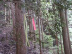| 登山道は赤い境界杭に沿って | 登山者目印の赤いリボンも | 上林から送電線が上る稜線 | 登山道も良く整備されている | 之より北 丹波国何鹿郡の石碑 |