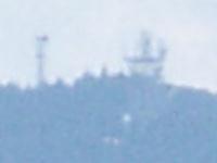 | 寺山頂上からの展望で、上記のパラボラ塔の少し右、後ろの山並みに、夕日に光るパラボラを発見。 長老ケ岳とそのパラボラか?? デジカメでは、ズ−ムで撮っても細部がはっきりしない。 |