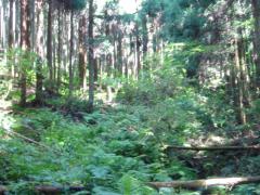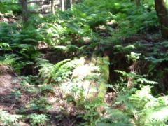 | 峠入り口の草道 | 谷沿いの林間は雑草の中 | 丸太橋がある | 木の橋 |