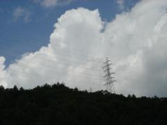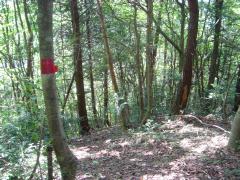 | 山(峠)道が続く | 関電の方向標識 | 稜線の鞍部:ここが久田美峠か | 鉄塔が見える |