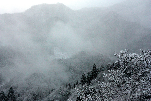 | 新雪の朝の山 (オジロ・スキー場から) |