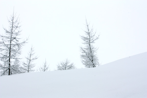 | 白い丘と立ち木 (オジロ・スキー場にて) |