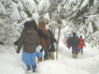 雪の中を下る